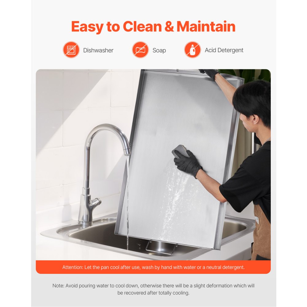 Przemyślane szczegóły: tacka na tłuszcz i otwór odpływowy umożliwiają odpływ nadmiaru oleju, dzięki czemu miejsce do gotowania pozostaje czyste, a przygotowywane posiłki są zdrowsze. Ponadto ścianki boczne pomagają utrzymać jedzenie na miejscu, zapobiegając jego rozlewaniu, dzięki czemu gotowanie jest bezpieczniejsze i przyjemniejsze