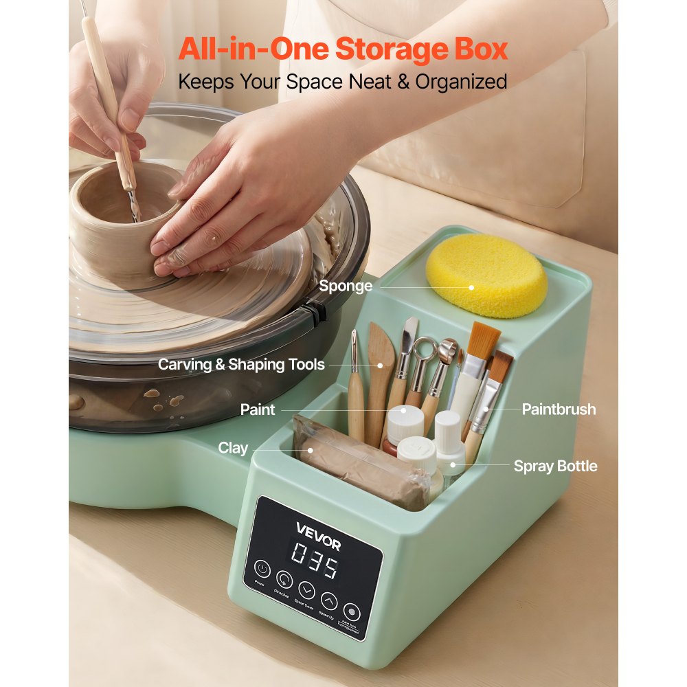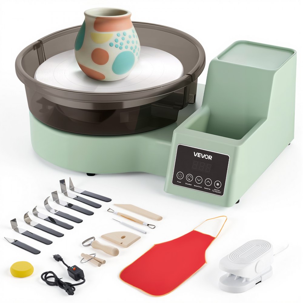 Koło garncarskie elektryczne VEVOR 450 W, talerz obrotowy 28 cm (aluminium), maszyna garncarska z pedałem nożnym i regulowaną prędkością 30-300 obr./min oraz obudową PP, do samodzielnego tworzenia glinianych modeli, kolor zielony - Sprzęt do przygotowywania żywności | Galaxy Sklep