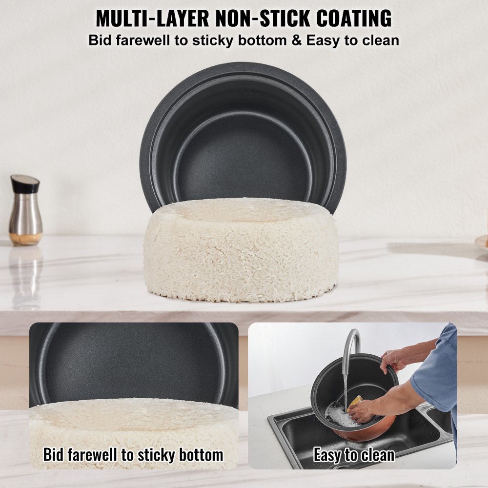 Wysokiej jakości i nieprzywierająca powłoka wewnętrzna: Nieprzywierająca powłoka wewnętrzna i opływowy kształt ułatwiają czyszczenie. Powłoka nieprzywierająca zapobiega przywieraniu ryżu i zapewnia pyszny, puszysty ryż za każdym razem.