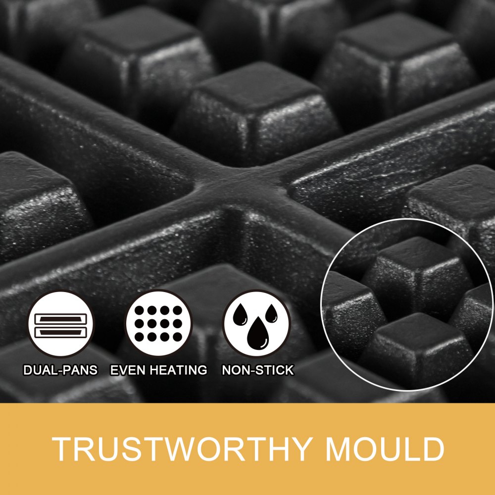 【SZEROKIE ZASTOSOWANIE】 - Gofry robione naszą maszyną są puszyste w środku i chrupiące na zewnątrz. Możesz dodać czekoladę, cukierki lub owoce według własnych upodobań, aby nadać ciepłym gofrom inny smak. Dobry wybór dla piekarni, restauracji, kiosków, stołówek itp.
