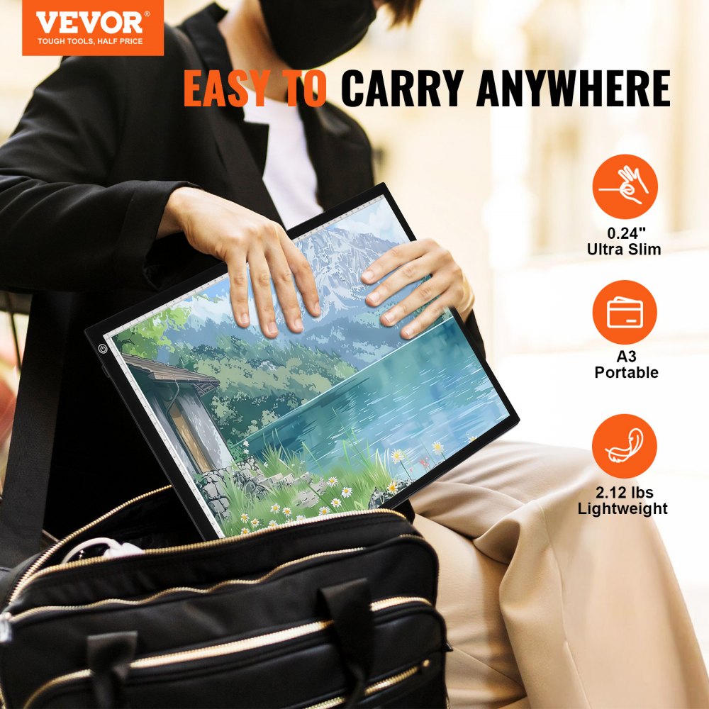 Podkładka świetlna LED VEVOR A3, podświetlana skrzynka świetlna z 3-stopniową regulacją jasności, zasilany przez USB panel świetlny do odrysowywania, podświetlana skrzynka do malowania diamentowego, animacji szkicowania i rysowania, czarna - Sprzęt do przygotowywania żywności | Galaxy Sklep