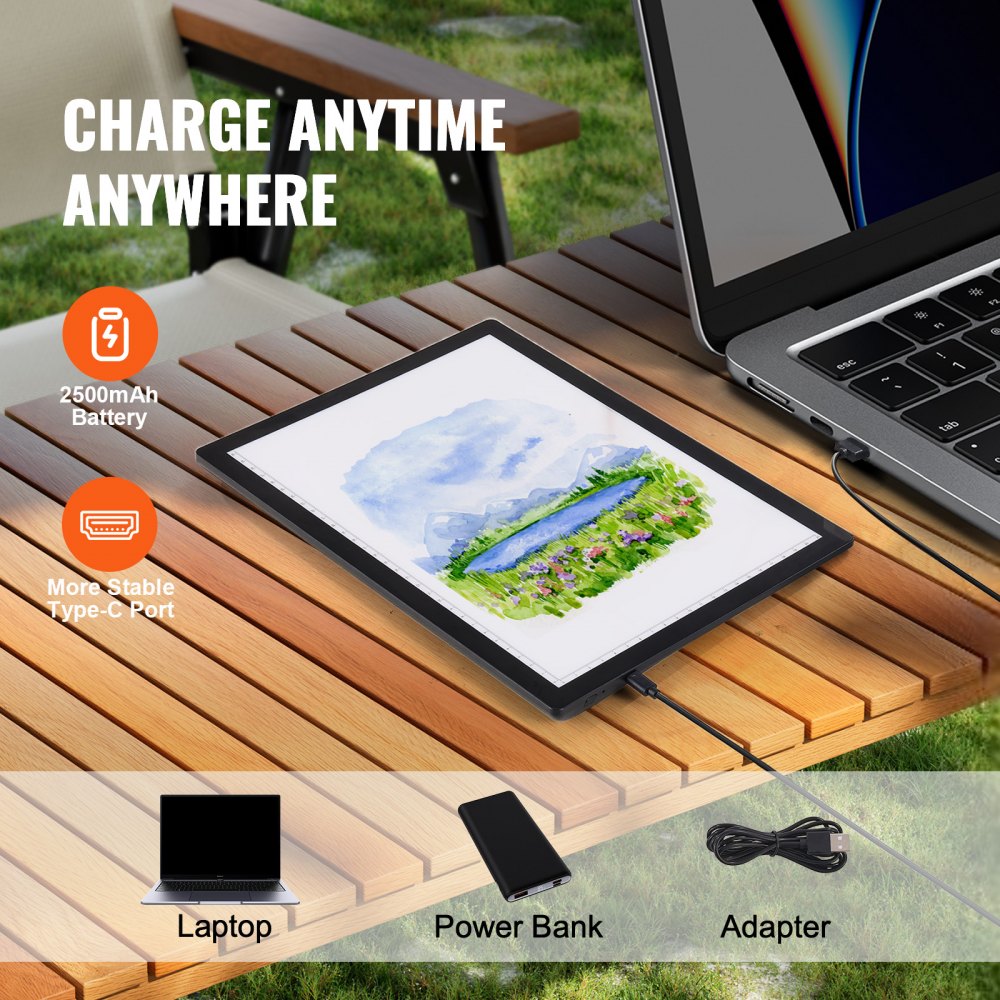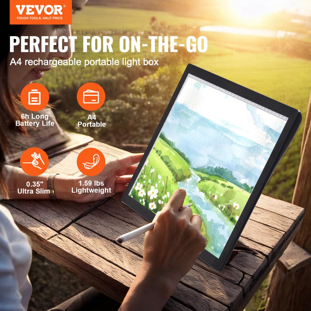 Podkładka świetlna LED VEVOR A4, podświetlana tablica świetlna z 5-stopniową regulacją jasności, ładowalna tablica świetlna do kalkowania, podświetlana tablica do animacji malowania diamentowego, szkicowania i rysowania (czarna) - Sprzęt do przygotowywania żywności | Galaxy Sklep