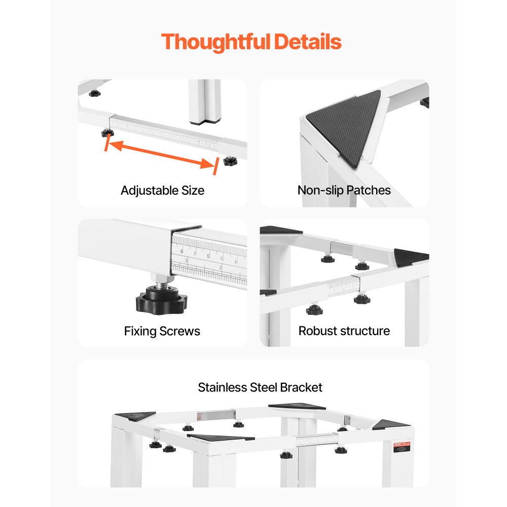 Podstawa pralki VEVOR 305 mm, cokół pralki 544 kg, regulowana platforma od 475 do 785 mm, antypoślizgowe nóżki, solidna stalowa podstawa pralki, uniwersalna, kolor biały - Sprzęt do przygotowywania żywności | Galaxy Sklep