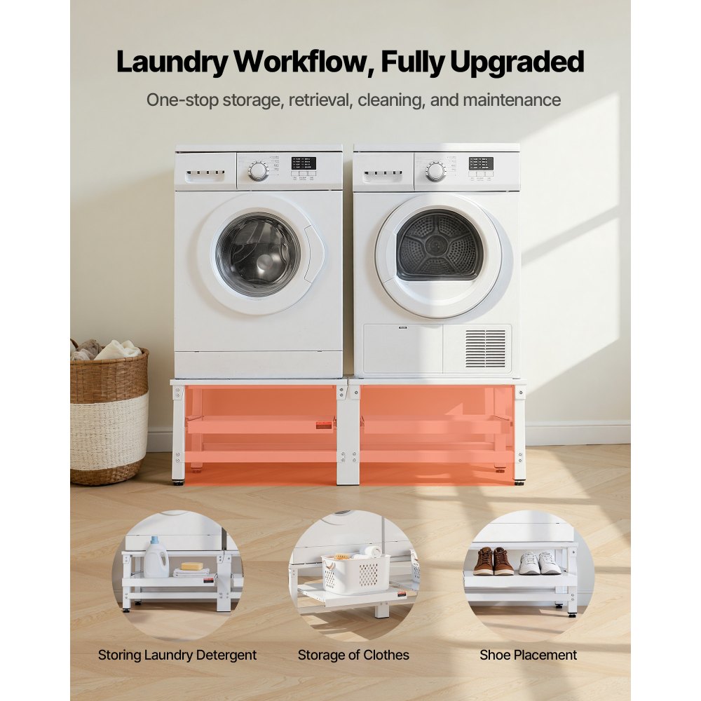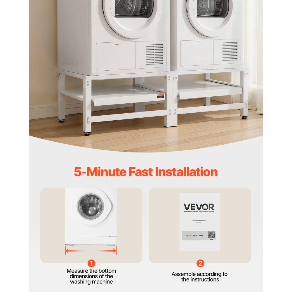 Podstawa pralki VEVOR o wysokości 355 mm, podwyższenie pod pralkę z wysuwaną półką, udźwig 318 kg, antypoślizgowe nóżki, podstawa suszarki, cokół, uniwersalna, kolor biały, 2 sztuki w opakowaniu - Sprzęt do przygotowywania żywności | Galaxy Sklep