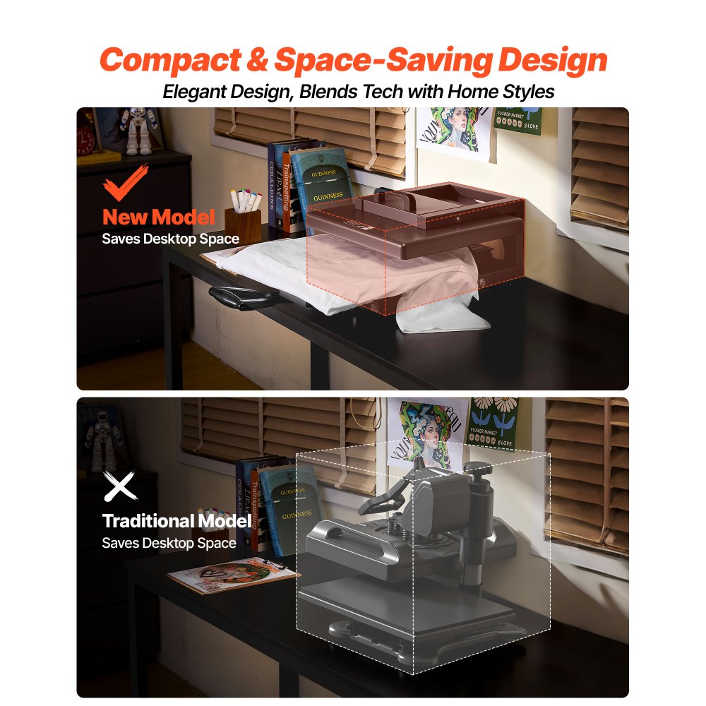 Szerokie zastosowanie: Nasza prasa do koszulek charakteryzuje się zupełnie nową, opatentowaną konstrukcją – nie jest już uniwersalna. Czarno-jasnozielona kolorystyka z łatwością dopasowuje się do różnych stylów dekoracji i jest kompatybilna ze wszystkimi projektami z winylu HTV i termosublimacji.