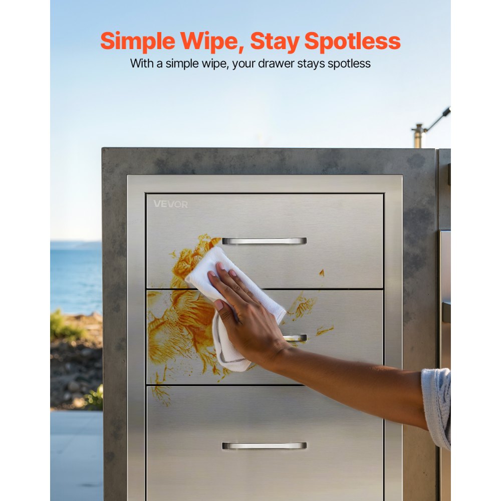 Szuflady do kuchni zewnętrznej VEVOR 46x59x59 cm (szer. x gł. x wys.), potrójne szuflady do grilla ze stali nierdzewnej z uchwytami, szuflady do grilla do kuchni zewnętrznej lub na wyspę grillową, szafka z szufladami