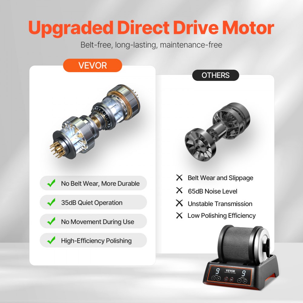 Bezpaskowy silnik z napędem bezpośrednim: Koniec z obawami o zerwane paski! Silnik z napędem bezpośrednim zapewnia wydajną moc i cichą pracę na poziomie 35 dB. Zestaw do polerowania kamieni nie nagrzewa się nawet po długim użytkowaniu, zapewniając dłuższą żywotność i niekończącą się zabawę.