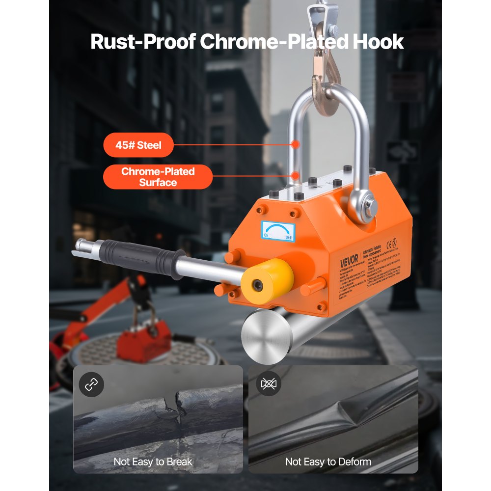 Silna siła magnetyczna: stalowy wózek z podnośnikiem magnetycznym wyposażony jest w wysokiej jakości magnes i zapewnia siłę magnetyczną do 600 kg (1320 funtów) ze współczynnikiem bezpieczeństwa 2,0