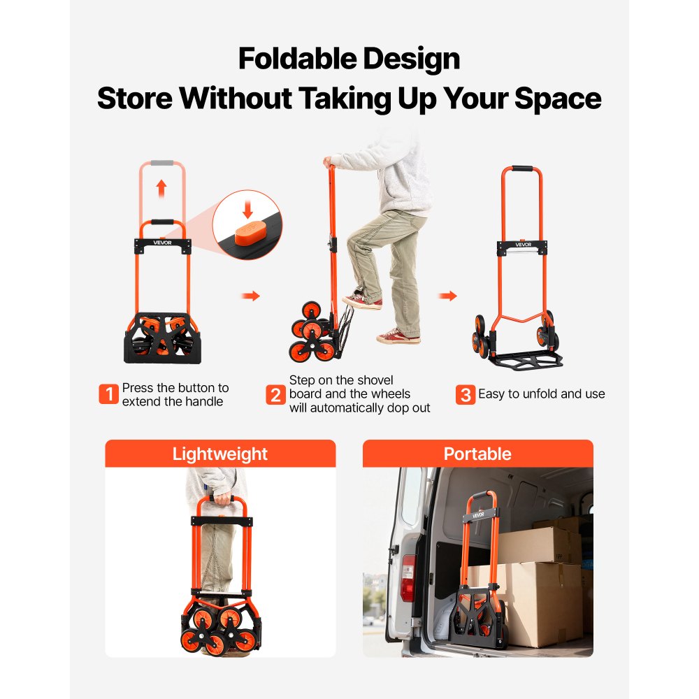 Składany wózek schodowy do wspinania się po schodach, udźwig 54 kg, wózek schodowy z teleskopową rączką, 6 kółek i 2 pasami napinającymi, wózek transportowy, wózek schodowy do wspinania się po schodach, idealny do domu, na zakupy i do magazynu - Sprzęt dźwigowy i wyciągarki | Galaxy Sklep