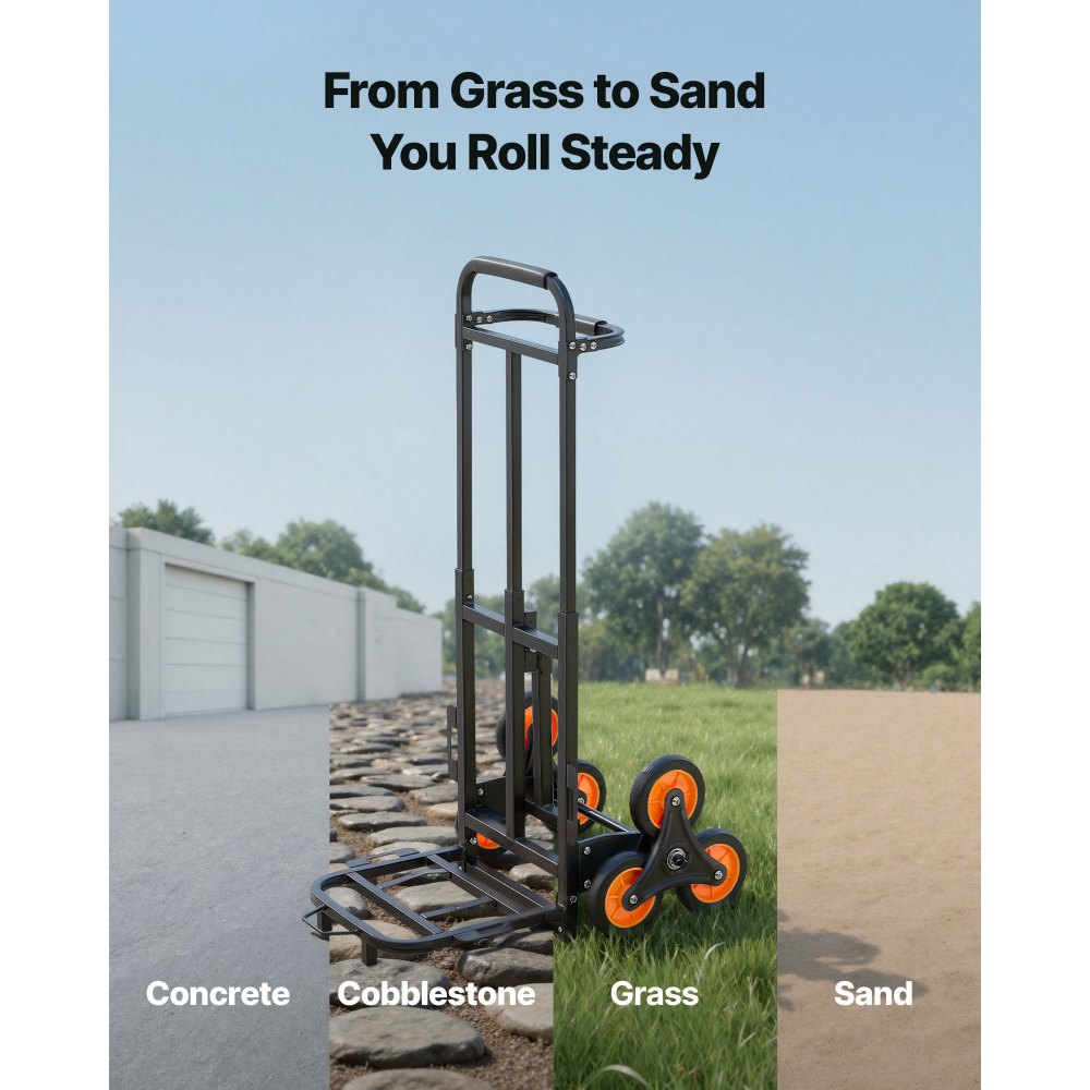 Bezpieczna i solidna konstrukcja: Ten wózek schodowy posiada wytrzymałą ramę ze stali węglowej i solidne koła. Jest odporny na zużycie, trwały i zapewnia niezawodną pracę – zarówno w domu, jak i w małym warsztacie.