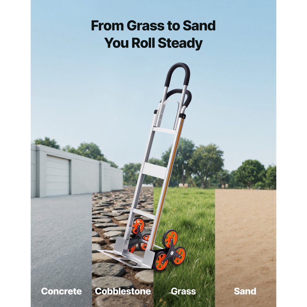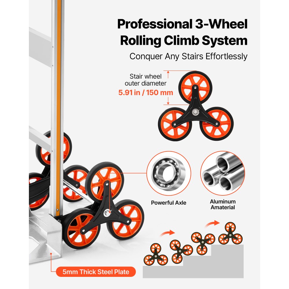 Bezpieczna i solidna konstrukcja: Ten wózek schodowy wyposażony jest w wytrzymałą aluminiową ramę i solidne koła. Jest odporny na zużycie, trwały i oferuje niezawodną wydajność – zarówno w domu, jak i w małym warsztacie.