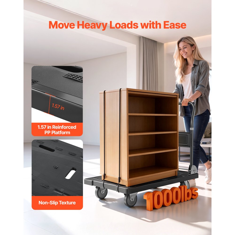 Wózek platformowy składany VEVOR, udźwig 454 kg, wózek transportowy z kółkami obrotowymi, wózek ręczny z antypoślizgową powierzchnią ładunkową, składany wózek transportowy ułatwiający przechowywanie, wózek na kółkach 895 x 595 x 850 mm - Sprzęt dźwigowy i wyciągarki | Galaxy Sklep