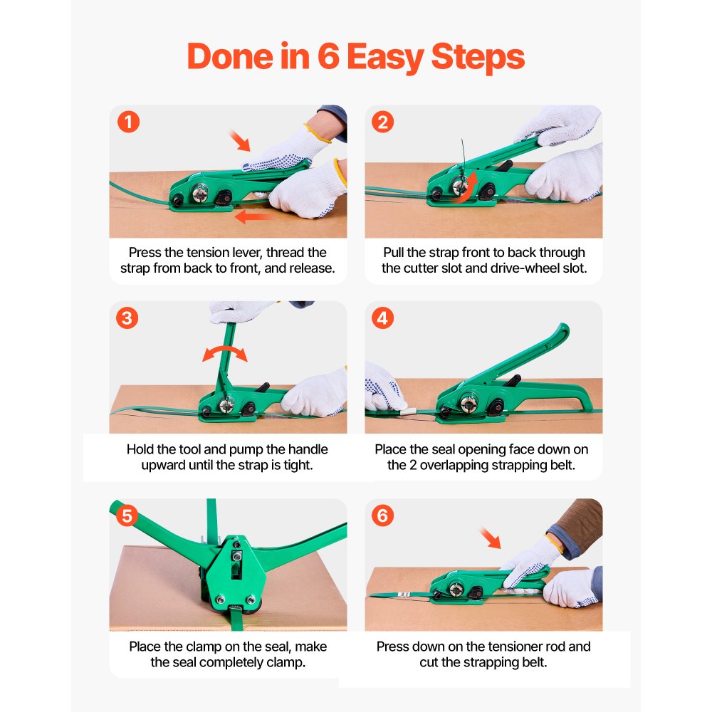 Zestaw do spinania VEVOR 6-częściowy z taśmą spinającą, ręczne narzędzie do spinania z taśmą PET 457 m, 450 klipsami metalowymi, 150 ochraniaczami krawędzi, doskonałe wyposażenie warsztatu do pakowania, transportu i przechowywania - Sprzęt dźwigowy i wyciągarki | Galaxy Sklep