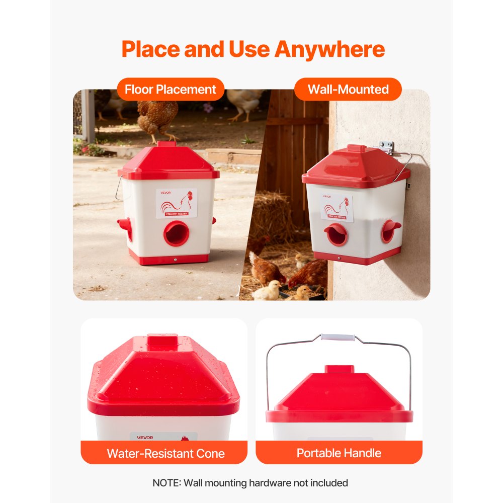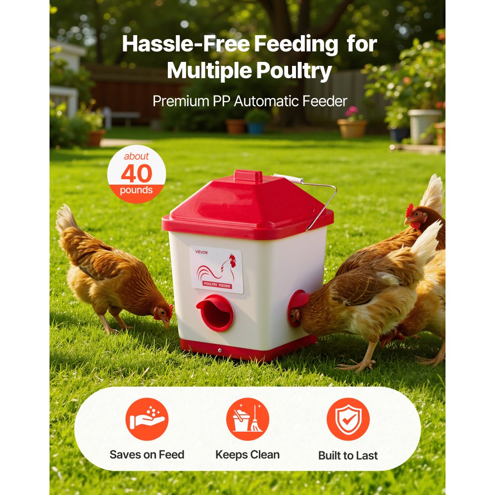 Automatyczny karmnik VEVOR, dozownik paszy 18,14 kg, 3 otwory do karmienia, grawitacyjny, z uchwytem, wodoodporny, nie wytwarzający odpadów, do użytku wewnątrz i na zewnątrz kurników - Sprzęt rolniczy i leśny | Galaxy Sklep