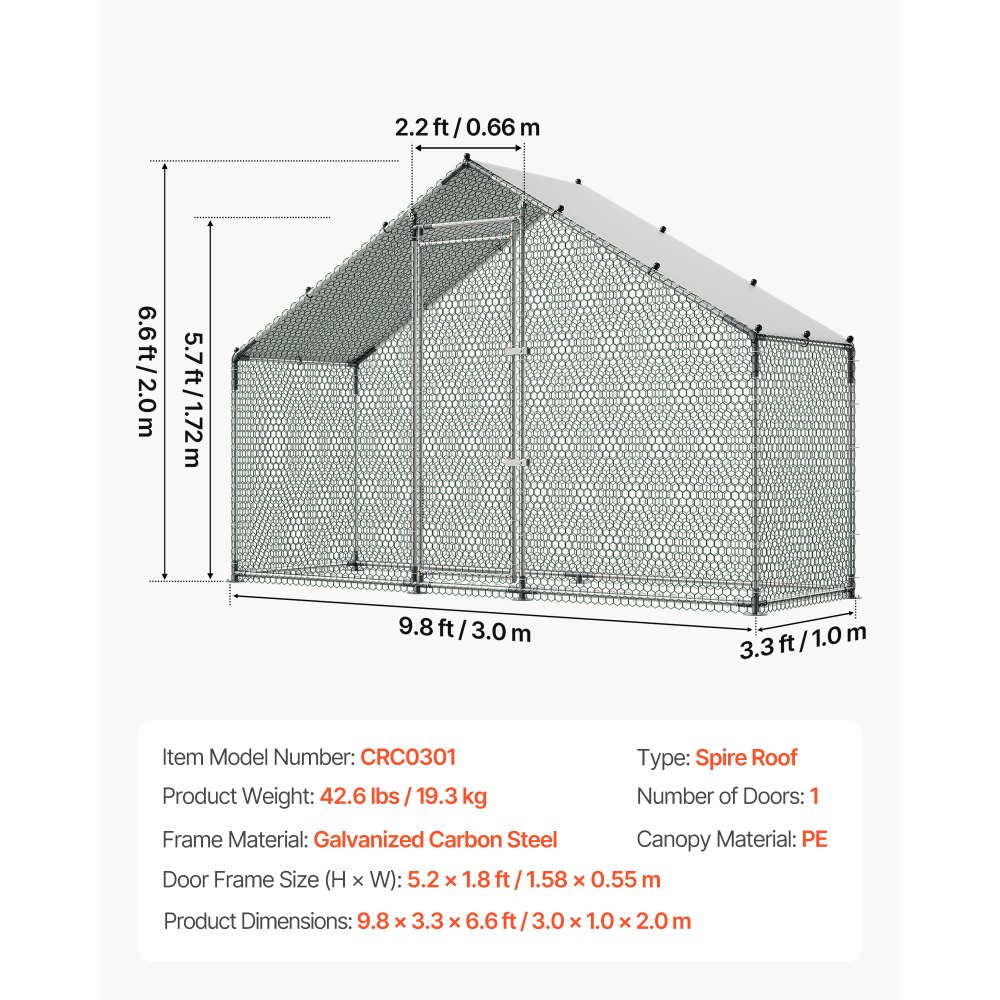 Kurnik VEVOR, 3x1x2 m, wybieg dla kur z wodoodporną osłoną i solidną ramą, klatka dla drobiu ze spadzistym dachem, wybieg zewnętrzny dla królików, kur, gęsi - Sprzęt rolniczy i leśny | Galaxy Sklep