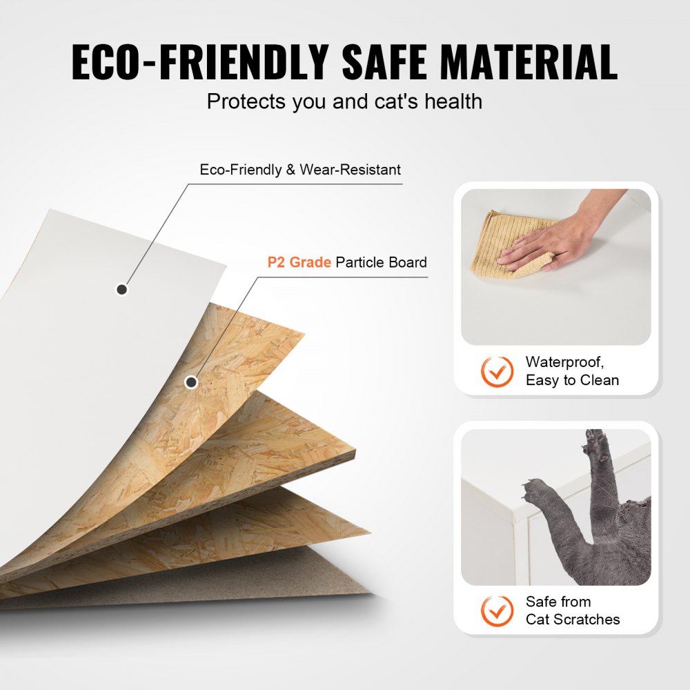 Wytrzymała ładowność: Maksymalne obciążenie wynosi 136 kg (300 funtów), a solidna i stabilna konstrukcja pozwala na bezpieczne przechowywanie wazonów, książek i innych dekoracji. Szafka na kuwetę może służyć również jako domek dla kota, stolik kawowy, stolik kawowy lub szafka pod telewizor. Można ją ustawiać jeden na drugim, aby zmaksymalizować wykorzystanie przestrzeni.
