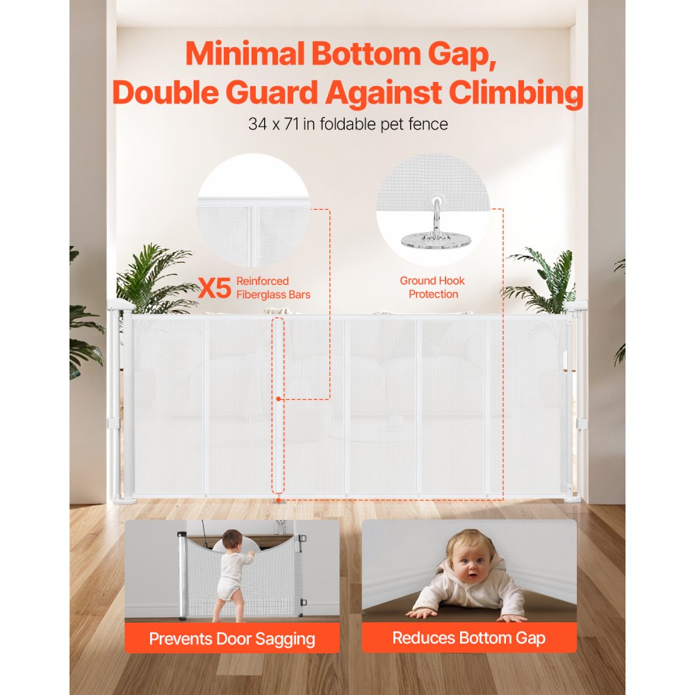 Rozkładana konstrukcja: Ta biała bramka siatkowa ma szerokość do 180 cm (71 cali) i wysokość do 87 cm (34 cali), co pozwala na regulację rozmiaru otworu w razie potrzeby. Rozkładana konstrukcja ułatwia przechowywanie, gdy nie jest używana, zajmuje minimalną ilość miejsca i utrzymuje porządek w domu.