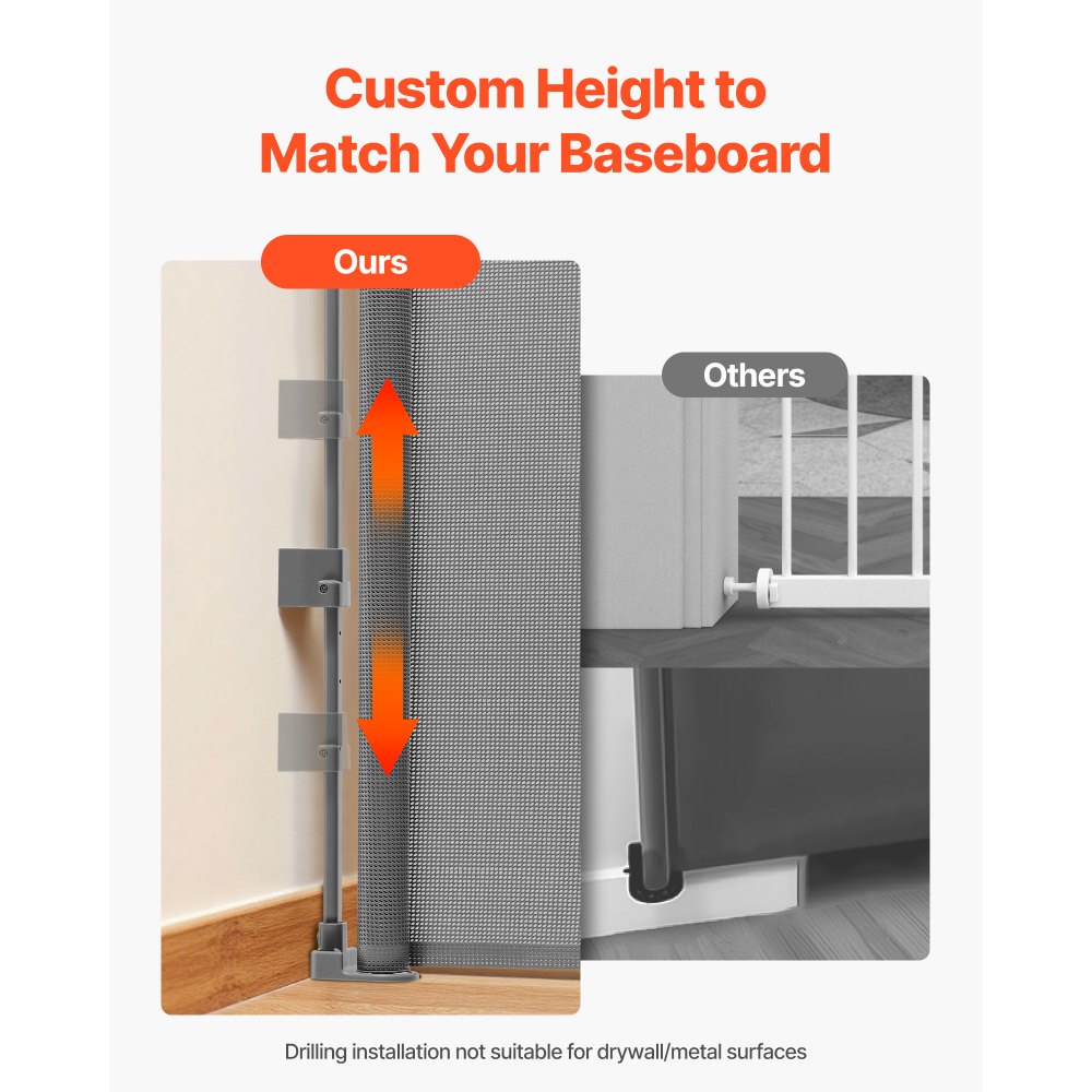 Hak zabezpieczający przed ucieczką: Zwierzęta i maluchy uwielbiają odkrywać świat – ta rozsuwana bramka dla dzieci ma wzmocniony hak, który zapobiega przedostawaniu się przez nią i uszczelnia niebezpieczne szczeliny w podłodze. Wytrzymała siatka zapewnia długotrwałą trwałość.