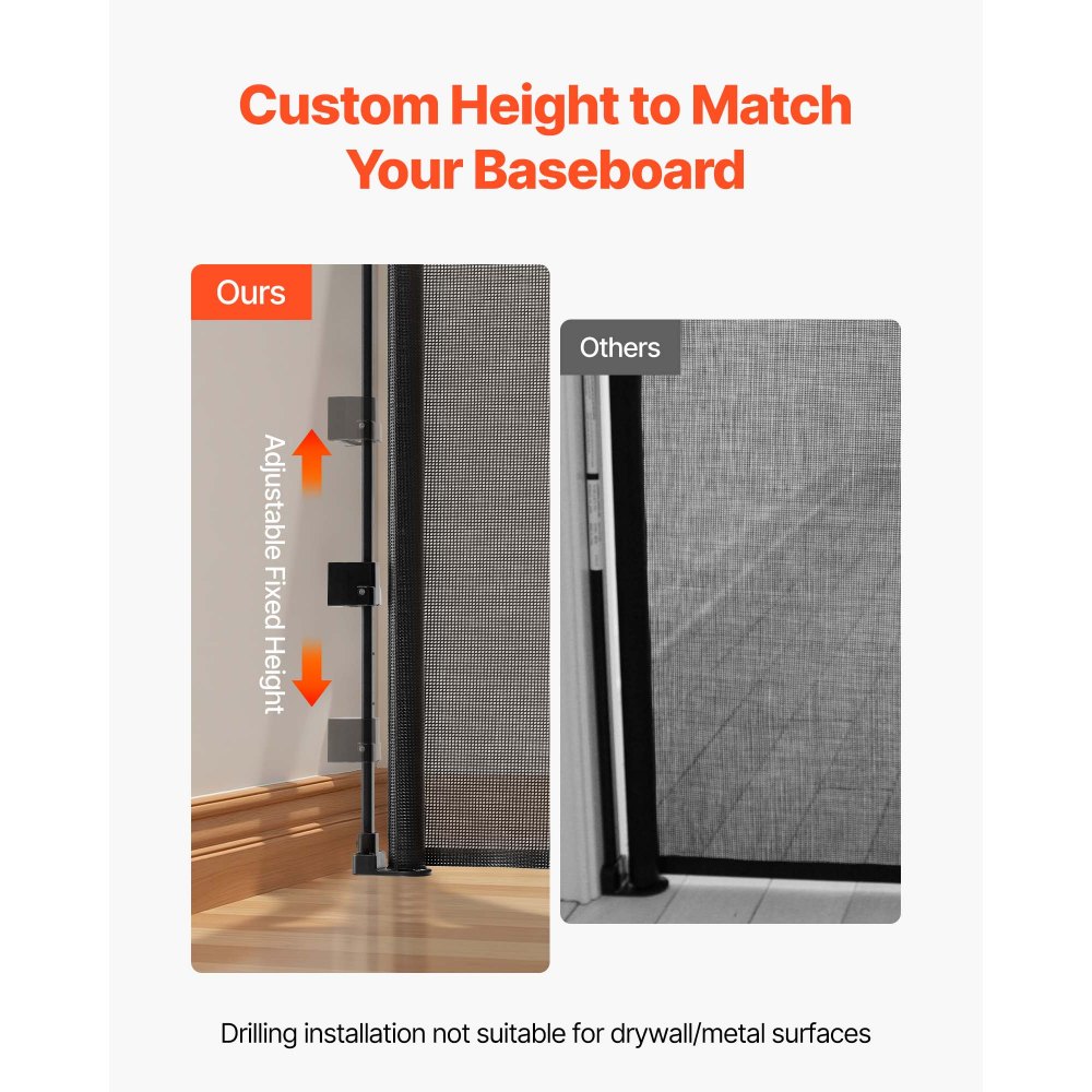 Bezpieczne oddzielenie bez ograniczania widoczności: Rozkładana bramka bezpieczeństwa wykonana jest z wytrzymałej siatki z tworzywa PVC dla dzieci, która jest miękka w dotyku, oddychająca i przezroczysta, dzięki czemu możesz monitorować swoje dziecko lub zwierzę z odległości, tworząc jednocześnie bezpieczną barierę