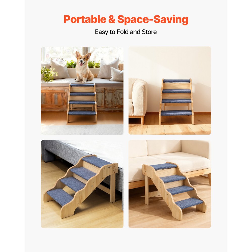 Schody dla psa VEVOR 740x430x500 mm, 4-stopniowe schody dla zwierząt, składane drewniane schody odpowiednie dla małych, średnich, dużych i starszych zwierząt, a także szczeniąt do 68 kg, drabinka dla psa do łóżka, sofy i samochodu - Sprzęt rolniczy i leśny | Galaxy Sklep