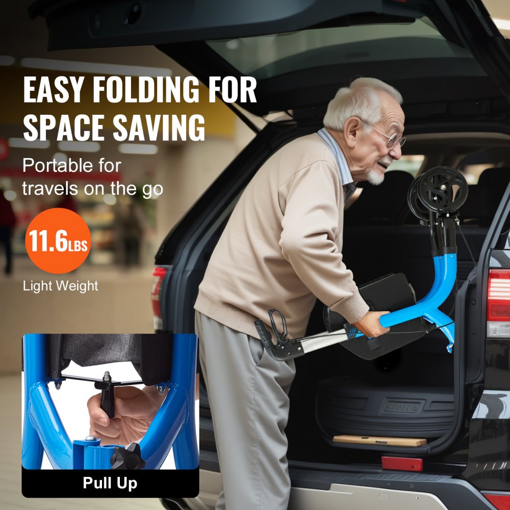 Przenośny 3-kołowy chodzik: Wykonany z wysokiej jakości aluminium, 3-kołowy chodzik VEVOR charakteryzuje się lekką i kompaktową konstrukcją, waży zaledwie 5,2 kg i obsługuje do 128 kg. Jest idealny dla seniorów i osób o ograniczonej sprawności ruchowej, do użytku w sklepach, na lotniskach i w podróży, a także jest idealnym towarzyszem codziennych czynności.