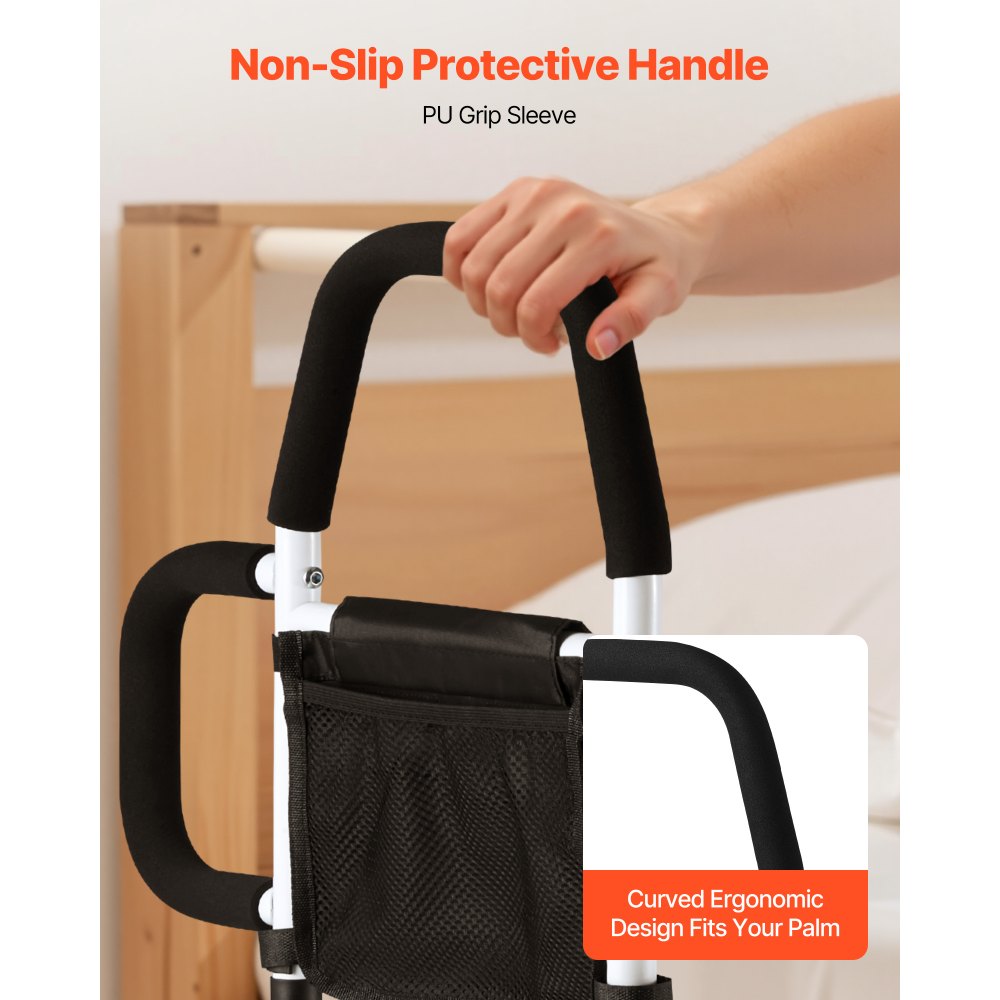 Barierka łóżkowa 610x400x645 mm, barierka łóżkowa z uchwytem bocznym i poręczą z poliuretanu, rurka ze stali węglowej ułatwiająca wejście dla seniorów, pasuje do łóżek typu king-size, queen-size, full-size i twin - Zdrowie i dobre samopoczucie | Galaxy Sklep