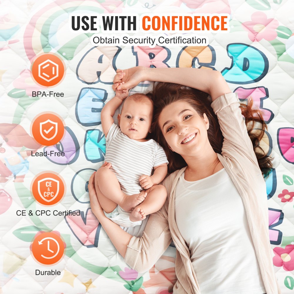 Mata do zabawy dla niemowląt VEVOR, bardzo duża, 180 x 200 cm, antypoślizgowa, jednoczęściowa, pogrubiona, miękka mata dla niemowląt, składana mata podłogowa, wodoodporna, maty do zabawy dla niemowląt, małych dzieci i niemowląt, nadaje się do prania w pralce