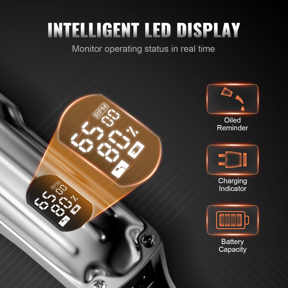 Inteligentny wyświetlacz LED: Kontroluj proces strzyżenia włosów dzięki wyświetlaczowi LED, który informuje o stanie naładowania baterii, wskaźniku ładowania i przypomnieniu o konieczności użycia oleju. Precyzyjne monitorowanie stanu utrzymuje profesjonalną maszynkę do strzyżenia włosów w optymalnym stanie, zarówno do użytku domowego, jak i profesjonalnego salonu.