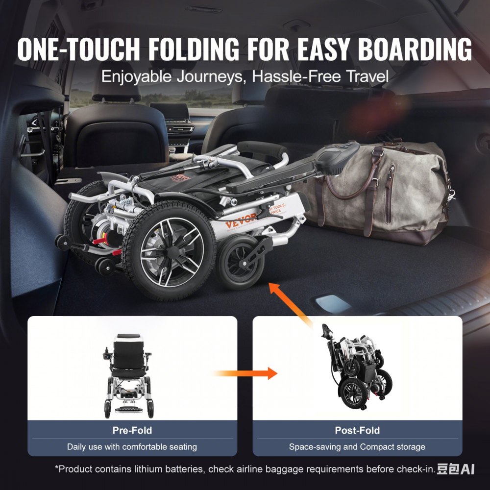 Wózek inwalidzki elektryczny VEVOR, ładowność 136 kg, szerokość 45 cm, składany wózek inwalidzki z napędem elektrycznym, zasięg 20 km, terenowy wózek ze stopu aluminium, regulowane oparcie - Zdrowie i dobre samopoczucie | Galaxy Sklep