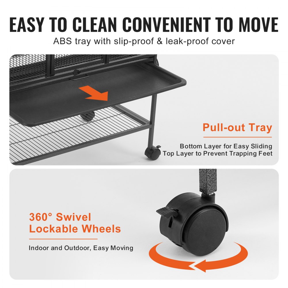 Łatwe w przenoszeniu i przechowywaniu: Nasza metalowa klatka dla zwierząt na kółkach jest wyposażona w blokowane kółka, dzięki czemu możesz łatwo przenosić swoje zwierzęta z domu na zewnątrz, zapewniając im dostęp do światła słonecznego i naturalnego. Posiada pojemną półkę, idealną do przechowywania akcesoriów dla zwierząt. Półkę można podzielić na sekcje, co zapewnia więcej możliwości przechowywania!