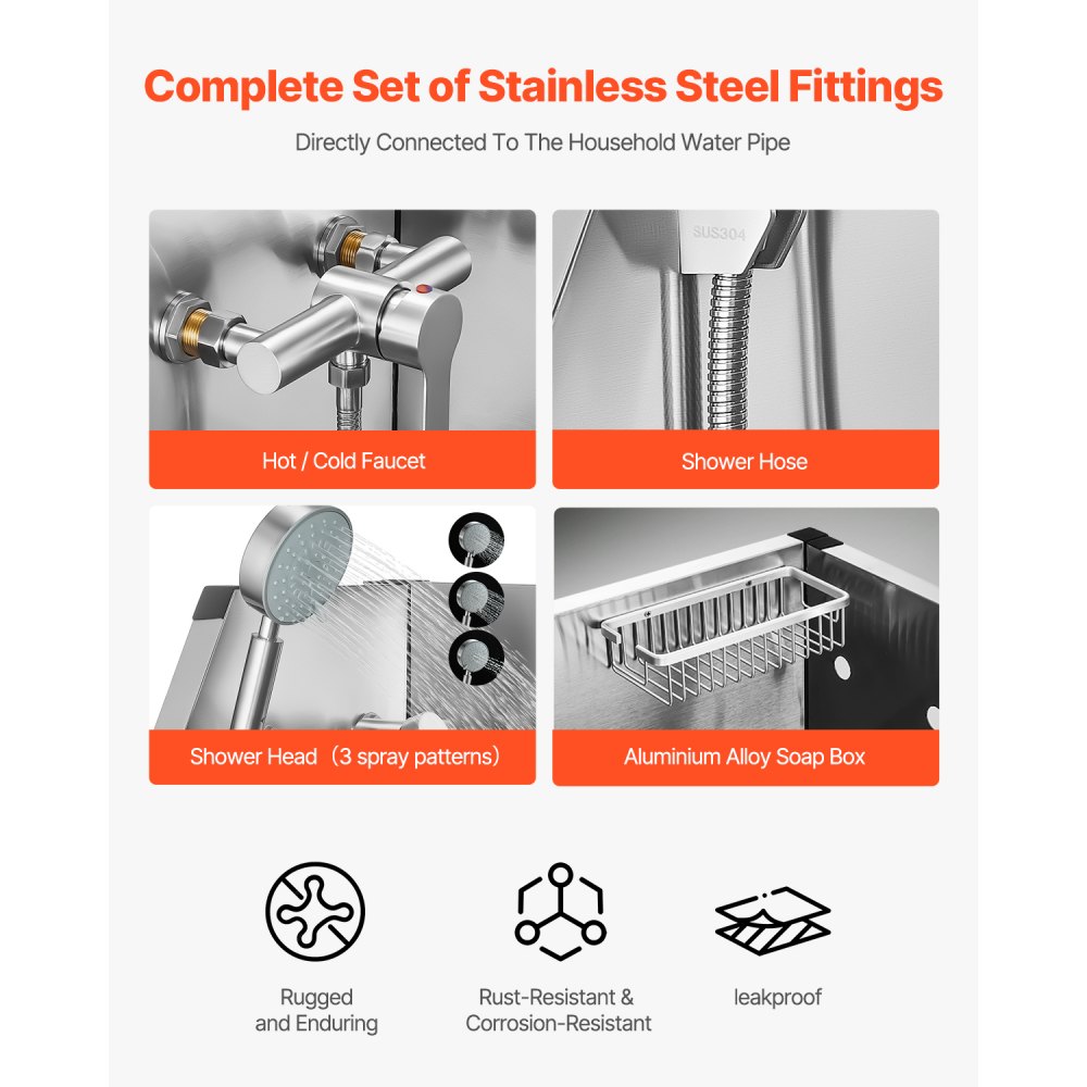 Zintegrowana konstrukcja: Zaokrąglone, bezszwowe spawy zapewniają lepsze uszczelnienie i ułatwiają czyszczenie. Wanny dla psów wyposażone są w krany z ciepłą i zimną wodą, prysznic z podwójną regulacją oraz mydelniczkę. Płyta filtrująca wodę wykonana z PE tworzy antypoślizgową powierzchnię odpływową, a dołączone zamknięcie w kształcie dzioba kaczki zapobiega przypadkowemu otwarciu drzwiczek przez zwierzęta domowe podczas kąpieli i utrzymuje je bezpiecznie w środku.