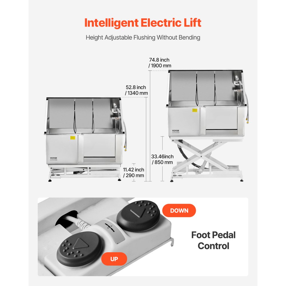 Elektryczna stacja do mycia psów z funkcją podnoszenia, wanna do pielęgnacji zwierząt ze stali nierdzewnej o szerokości 127 cm z płytą filtrującą wodę z PE, kranem i głowicą prysznicową, wanna dla psa, umywalka dla zwierząt (drzwi prawe) - Zwierzęta domowe | Galaxy Sklep