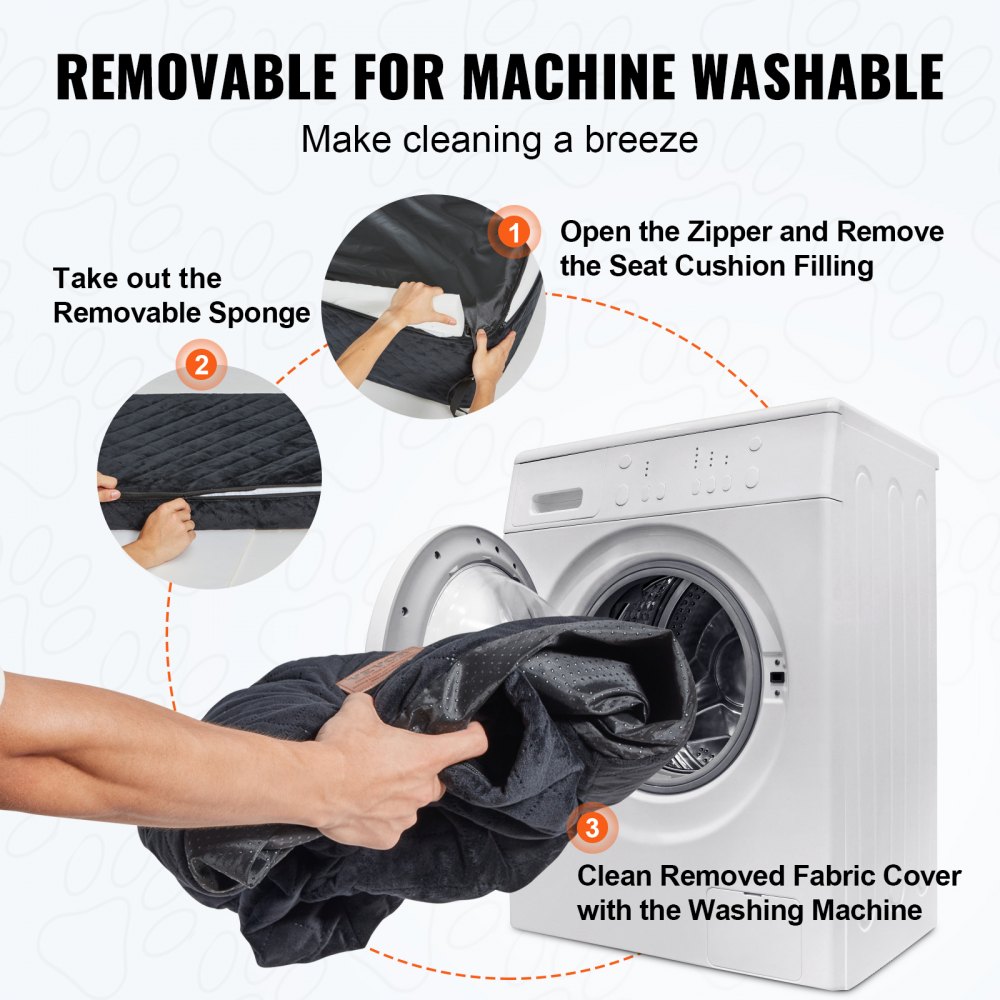 Łatwy w czyszczeniu: Ten praktyczny fotelik samochodowy dla szczeniaka ma całkowicie zdejmowany pokrowiec i wbudowany zamek błyskawiczny. Wystarczy wyjąć wypełnienie, a pokrowiec można prać w pralce, co ułatwia i uprzyjemnia pielęgnację.