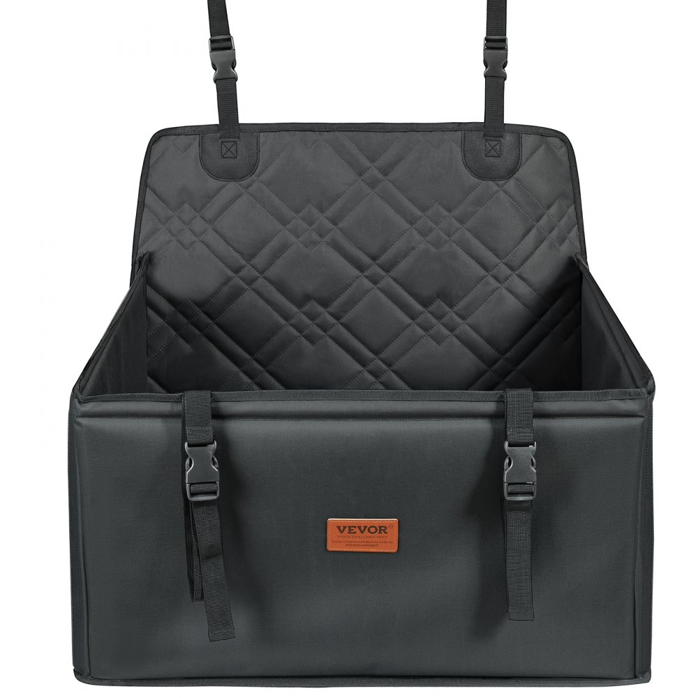 Fotelik samochodowy dla psa VEVOR, wodoodporny fotelik dla psa z ramą podporową, fotelik samochodowy dla zwierząt z dopinaną smyczą bezpieczeństwa, legowisko samochodowe dla psów małych, średnich i dużych do 18 kg, czarny