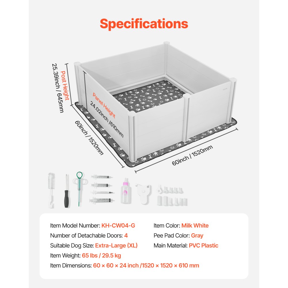Kojec dla szczeniąt, 1520 x 1520 x 610 mm, plastikowy kojec z PVC z drzwiczkami o regulowanej wysokości i zmywalną matą do oddawania moczu, klatka dla szczeniąt bardzo dużych psów, mleczno-biały