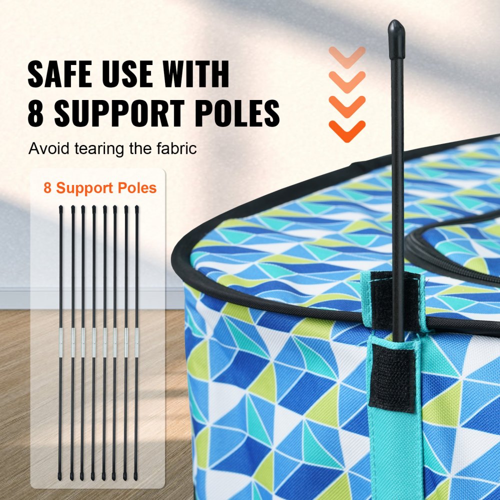 Ośmiostronna oddychalność: Nasz kojec dla zwierząt zapewnia doskonałą wentylację i ochronę przed owadami, dzięki czemu nadaje się na każdą porę roku. Wyposażony w osiem paneli z siatki, siatkową osłonę przeciwsłoneczną i oddychające zasłony z siatki, 360-stopniowa konstrukcja z siatki zapewnia doskonałą widoczność otoczenia, zapewniając odpowiednią cyrkulację powietrza i łatwy monitoring zwierząt.
