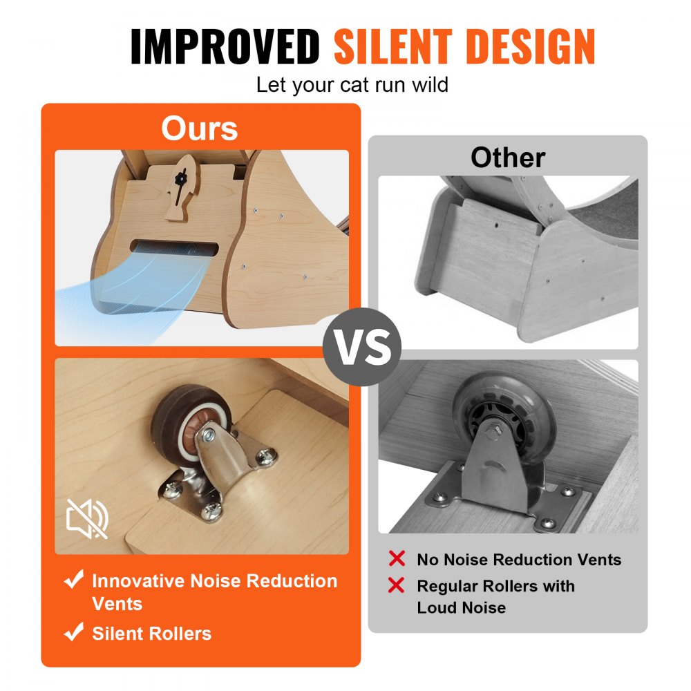 Koło do ćwiczeń dla kotów VEVOR, 1100 mm, bieżnia dla kotów, z wyjmowaną bieżnią, zabawka dla kotów do biegania, spacerów i treningu, odpowiednia dla większości kotów o wadze do 11,3 kg, koło do ćwiczeń dla kotów, kolor drewna - Zwierzęta domowe