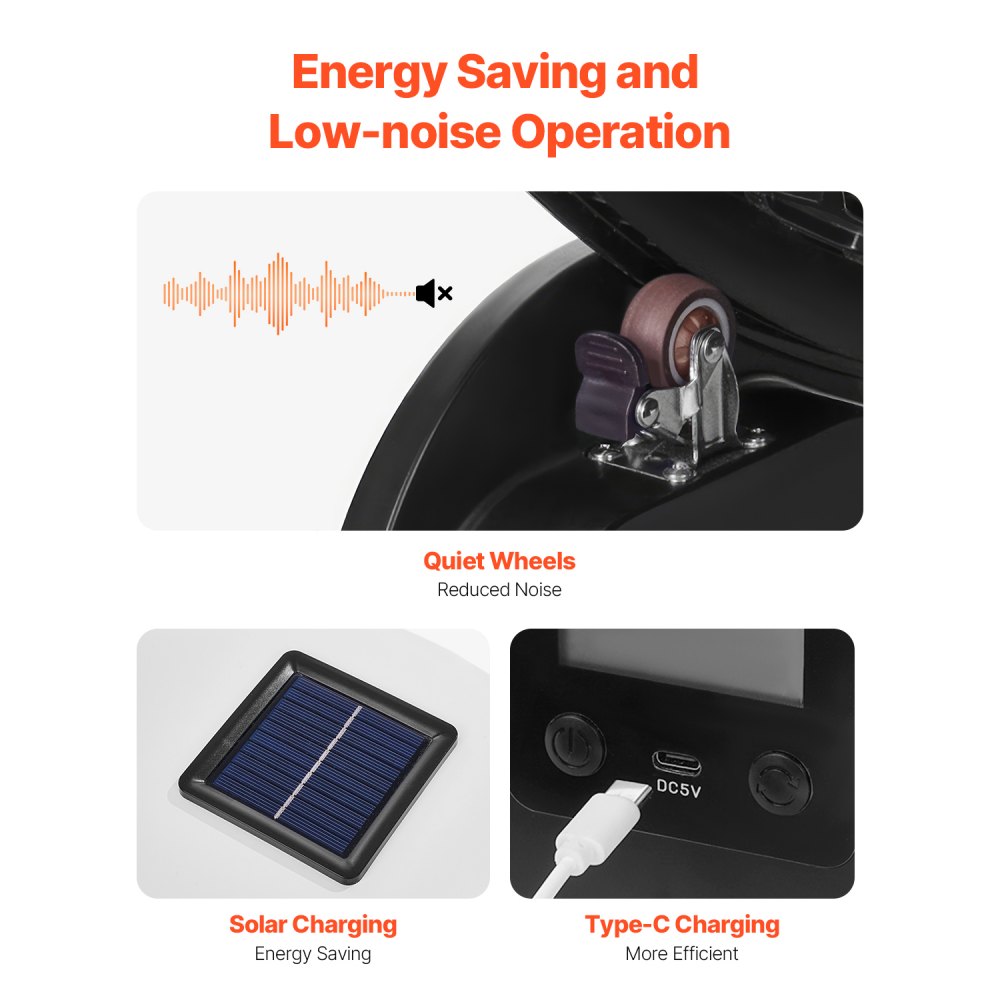 Energooszczędny i cichy: Nasz koci kołowrotek jest wyposażony w panel słoneczny, dzięki czemu jest energooszczędny i ekonomiczny. Ciche koła i lekka konstrukcja toru tworzą ciche środowisko do ćwiczeń, pozwalając Twojemu pupilowi na ćwiczenia bez zakłócania spokoju w domu.