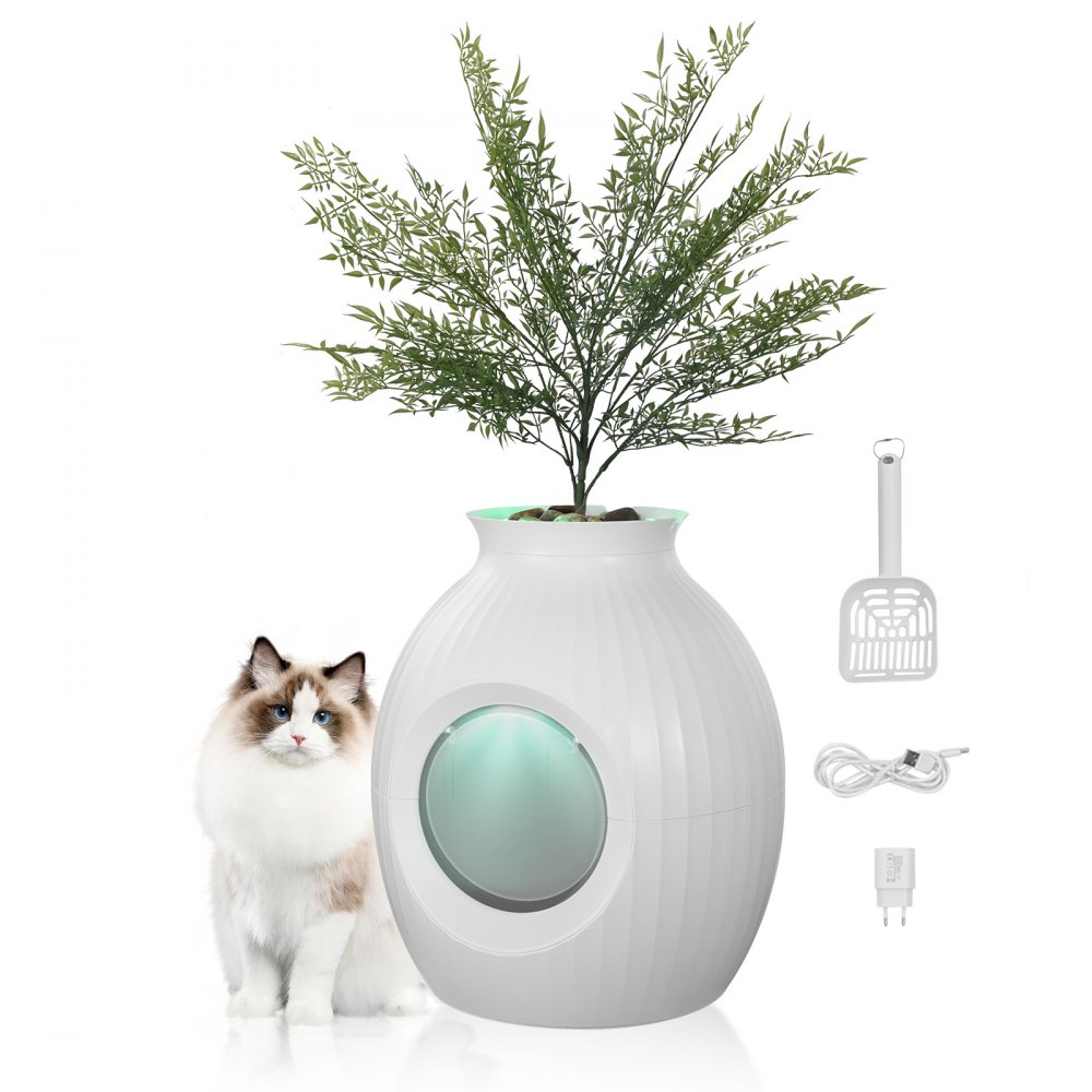 Co otrzymasz: 1 x obudowa kuwety dla kota z rośliną, 1 x sztuczna roślina (Nandina), 1 x zasilacz, 1 x kabel ładujący USB, 1 x kostka brukowa (2,5 kg), 1 x łopatka do zbierania kuwety dla kota, 1 x instrukcja obsługi.