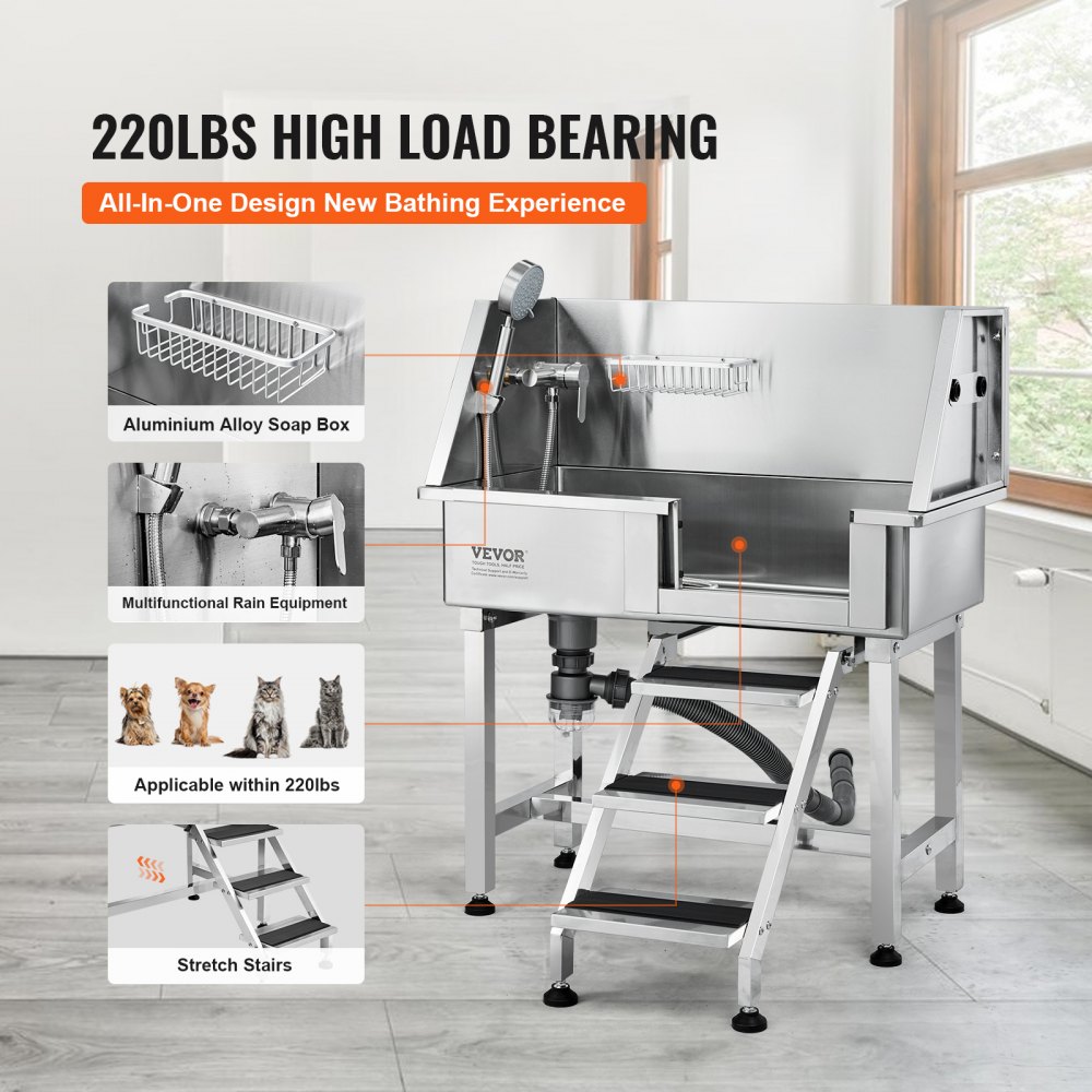 Bezszwowa konstrukcja o szerokości 864 mm: Nasza wielofunkcyjna wanna dla zwierząt ze stali nierdzewnej jest bezszwowo spawana i szczelna. Idealna dla właścicieli zwierząt i profesjonalnych groomerów poszukujących bezpiecznego i bezproblemowego rozwiązania do pielęgnacji zwierząt.