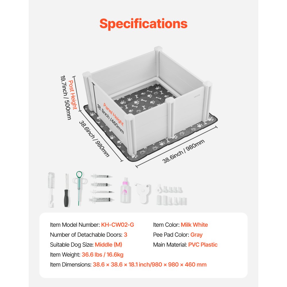 Pudel dla psa, 98 x 98 x 46 cm, plastikowy kojec dla szczeniąt z PVC, z drzwiczkami o regulowanej wysokości i zmywalną matą higieniczną, odporny na odkształcenia, dla psów średniej wielkości, mlecznobiały - Zwierzęta domowe