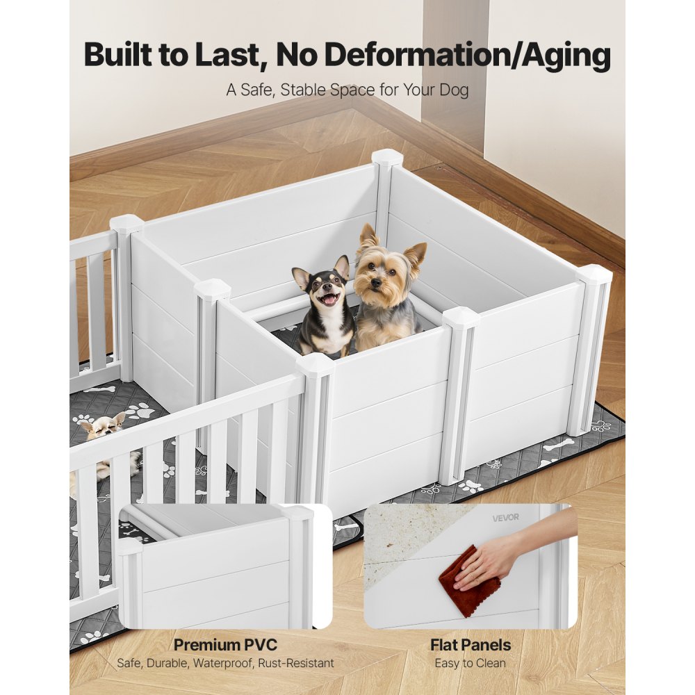 Trwała i solidna: Wykonana z wysokiej jakości tworzywa PVC, ta klatka dla szczeniaka jest wodoodporna, odporna na rdzę i zaprojektowana z myślą o długotrwałym użytkowaniu, bez odkształceń i starzenia. Płaski wierzch ułatwia czyszczenie.